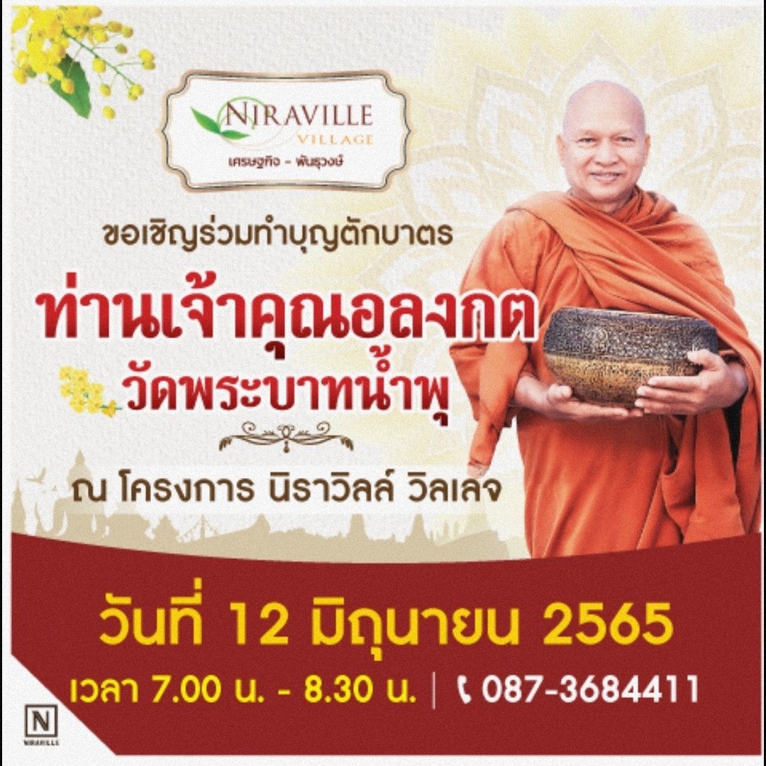 ขอเชิญร่วมทำบุญตักบาตร ท่านเจ้าคุณอลงกต วัดพระบาทน้ำพุ ร่วมทำบุญและบริจาคสิ่งของได้ เพื่อความเป็นศิริมงคล 📍ณ โครงการ นิราวิลล์ วิลเลจ https://maps.app.goo.gl/dMUJA1yB67iF9bhaA